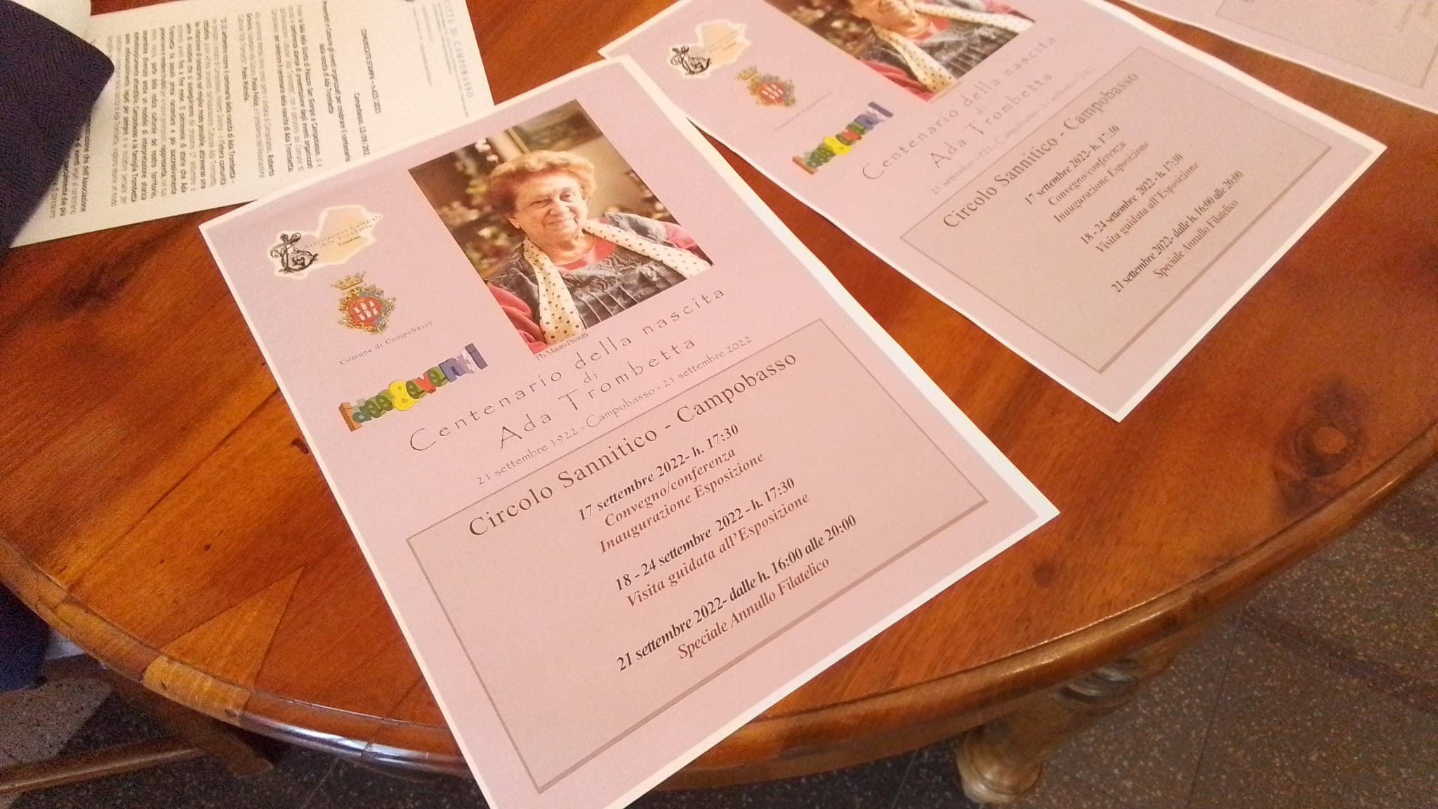 “La nostra volontà di ricordare la nascita di Ada Trombetta ci ha portato a riuscire a concretizzare alcune iniziative che si terranno presso il Circolo Sannitico di Campobasso, messoci a disposizione dal Comune di Campobasso. – ha dichiarato il presidente dell’Associazione Culturale Ada Trombetta, Paolo Matrella – In particolare è previsto, per sabato 17 settembre alle 17,30, proprio al Circolo Sannitico, un Convegno/Conferenza con relatori: Franco Valente, Rita Frattolillo, Vincenzo Lombardi ed Andrea Damiano, con la partecipazione di Stefano Sabelli. A seguire, l’inaugurazione di un’esposizione dei libri scritti da Ada Trombetta e di cose varie che hanno fatto parte della sua vita. L’esposizione sarà poi visitabile, con una guida, dal 18 al 24 settembre 2022, alle ore 17:30. Per prenotare l’eventuale partecipazione si può telefonare al 3928350285.