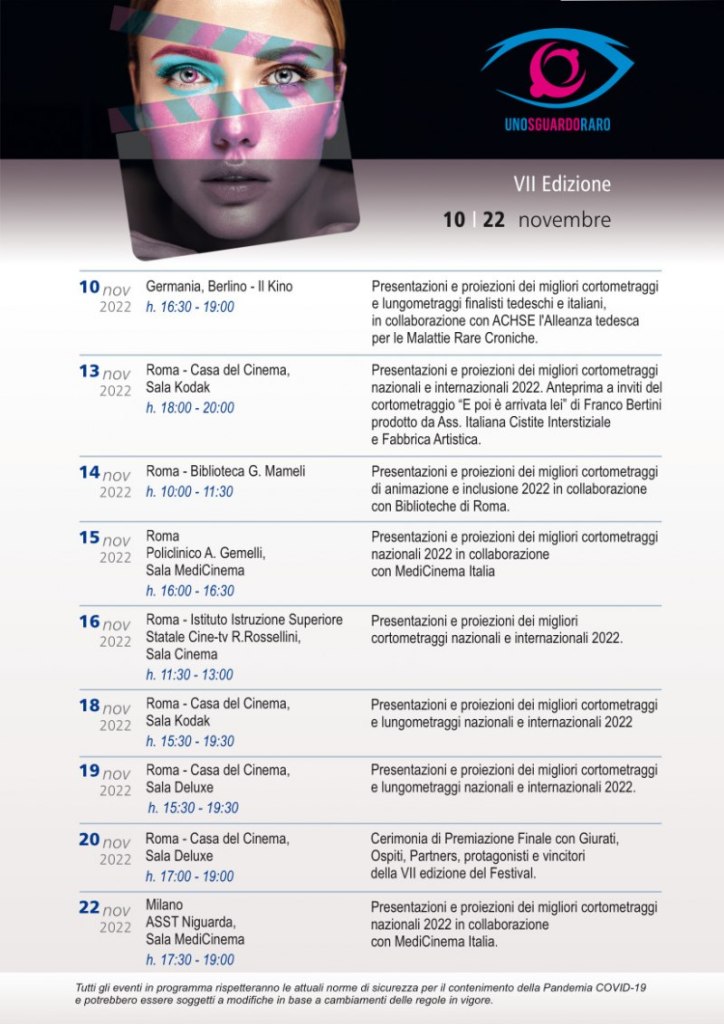 Al via la VII edizione di UnoSguardoRaro – RDIFF, il primo Festival internazionale di Cinema che seleziona e promuove le migliori opere video provenienti da tutto il mondo che raccontano le sfide della vita con una malattia rara o una condizione di diversità.